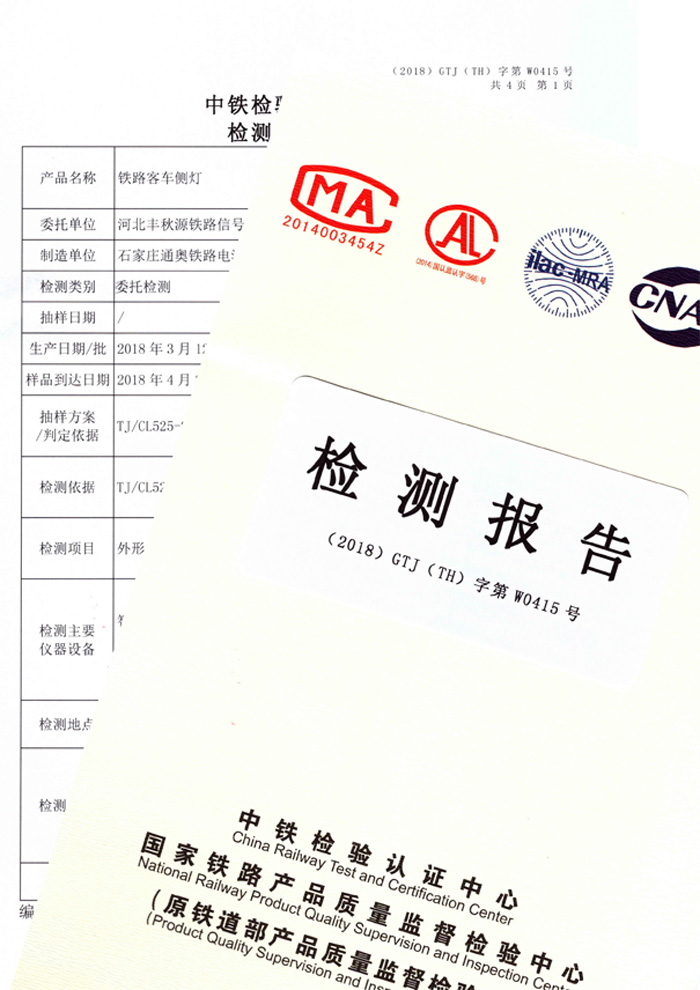 铁路客车侧灯——中铁检验报告