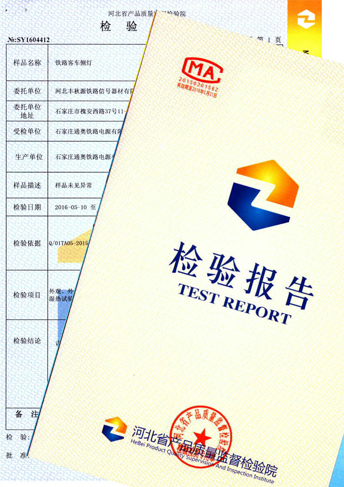 铁路客车侧灯——河北省质监局检验报告