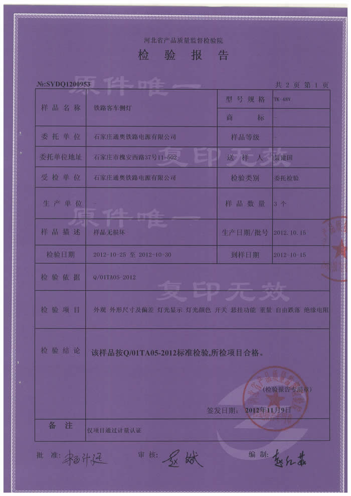 河北省侧灯检验报告