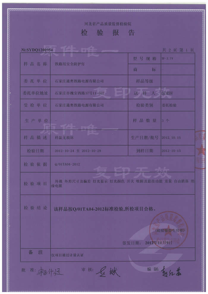 河北省防护灯检验报告
